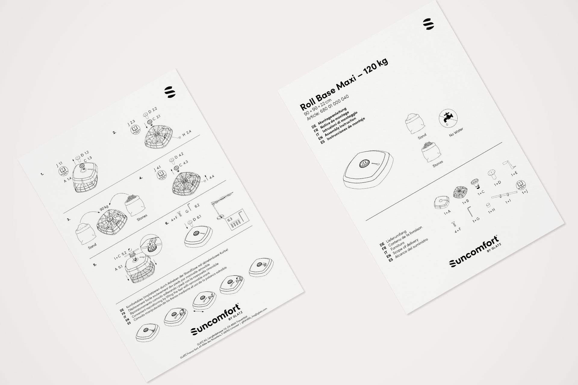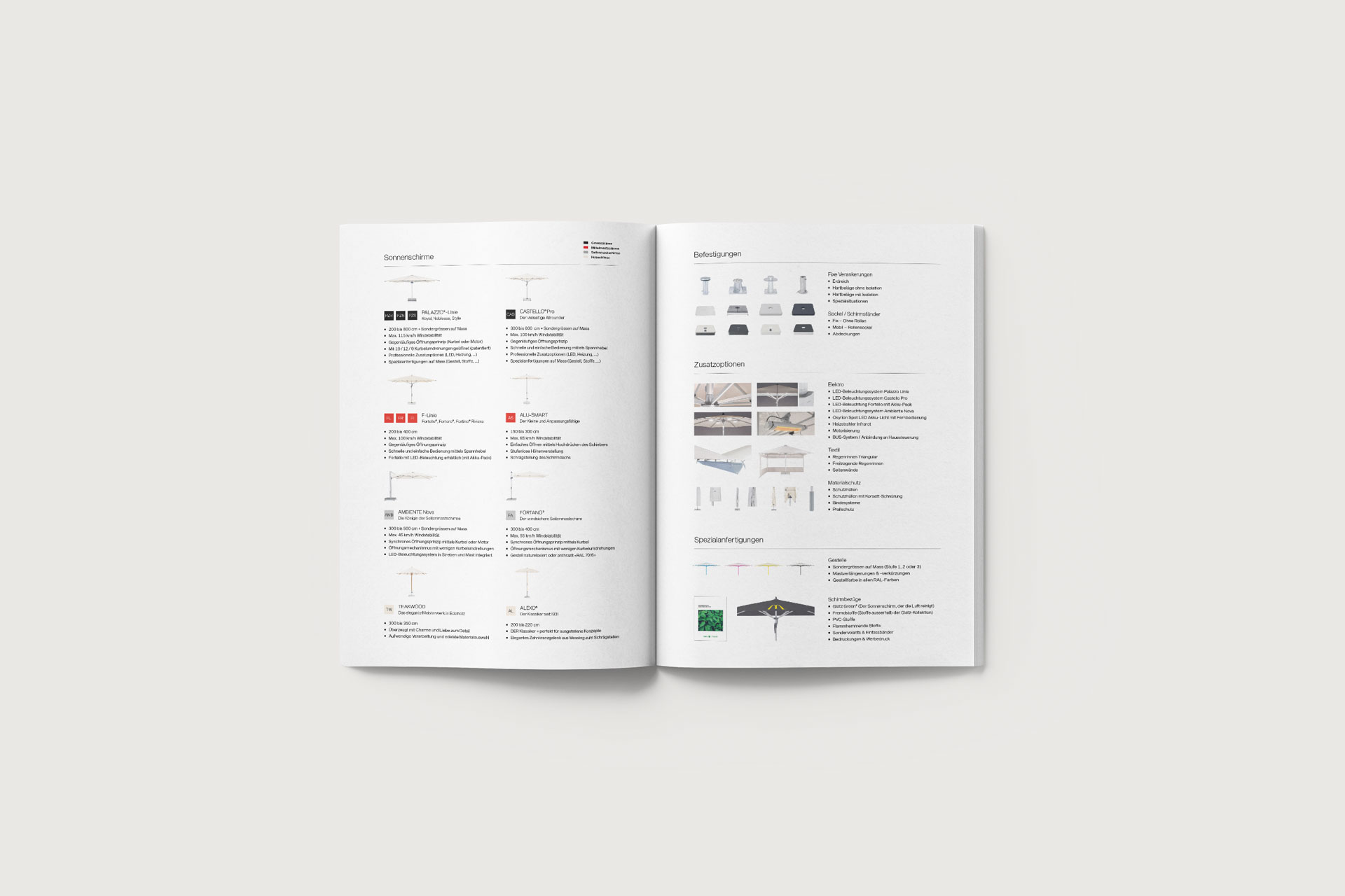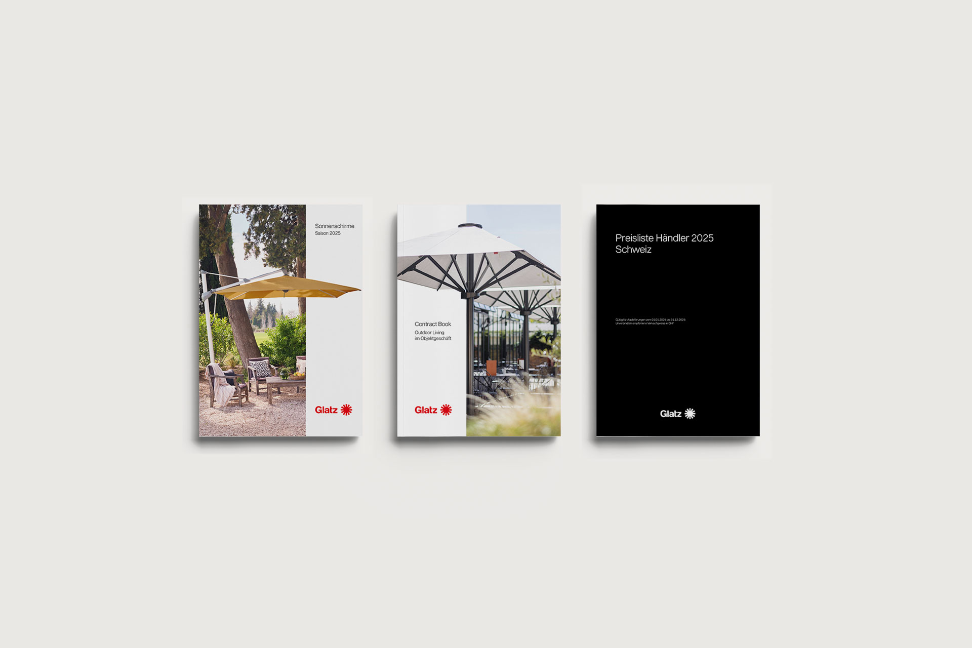 Printmedien, Etiketten und Bedienungsanleitungen für einen Schweizer Premium-Sonnenschirmhersteller. Ein durchgängiges Designsystem stärkt die Marke und unterstreicht den hohen Qualitätsanspruch.
